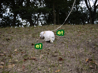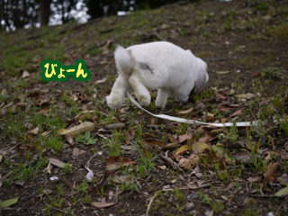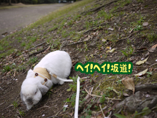 あまりにも動かないので、土手の坂に強制連行!