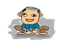 真ん中にドデンとカエル座りをしているオヤジ。