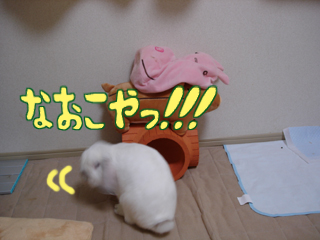 家は女の子なのに…突然ケージから出てきてサークルの中に居るぬいぐるみ達に次々襲いかかってます(苦笑)