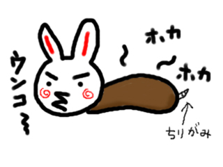 同時に犬のおちりの穴から兎の牧草が垂れ下がっていることがよくあります。