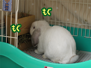 ケージの中で牧草は食べていただくことに。