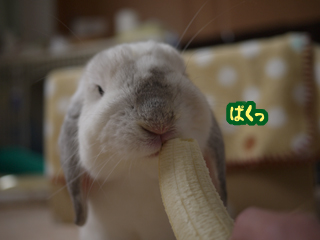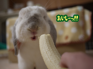 バナナを食べるひなたくん☆かわいすぎ!あんなに嬉しそうに食べてくれたら、そりゃあげたくなっちゃいますね。うさぎさんは皆バナナ好きなんですかね。うちの子は食べないけど…(たぶん食べ物だと認識してない)