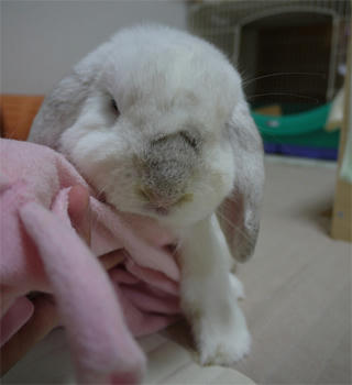 牧草の粉が鼻水で付いちゃうのよ~。
