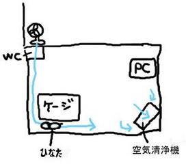 扇風機を出し、ケージを壁から離して風の通り道を作ります。