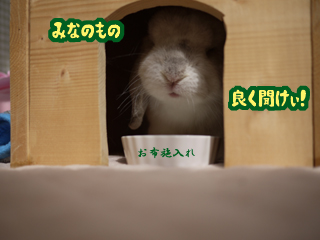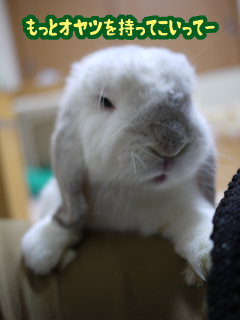 顔の上半分が影になってるのが「怖いヒト」って感じしま~す。うさぎちゃんたちみんなオヤツ帝国の帝王に憧れそうですね~