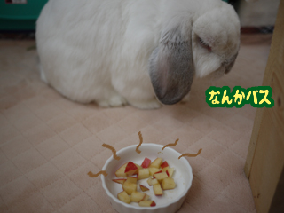 小さく切ったリンゴちゃんに混ぜてみました。