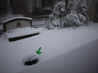 翌日は矢印の鉢がすっぽりと隠れるほどでした。