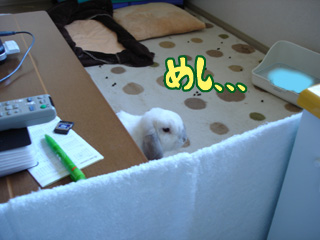 緑の矢印の方向にペレットや牧草を置いてあるのだ。