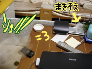 机の上に昇らせない工夫を施しました。それは次回。(まだ引っ張るの?)