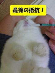 薬を飲むのを拒否してる坊。諦めが悪いやっちゃ(´Д`υ)