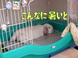 フフフ。扇風機付けてクーラーつけてウサギの楽園にしちゃいやしょう!(笑)