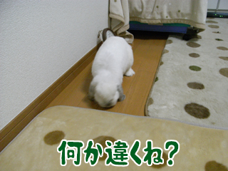 うちはフローリングに興味津々ながらも