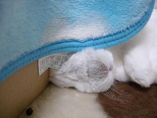 段ボールに掛けてある毛布で目隠し状態。