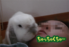 うちはホーランドロップの♀なのですが、まだまだやんちゃで。ちゅーではなくガブッですね。